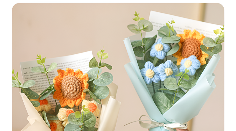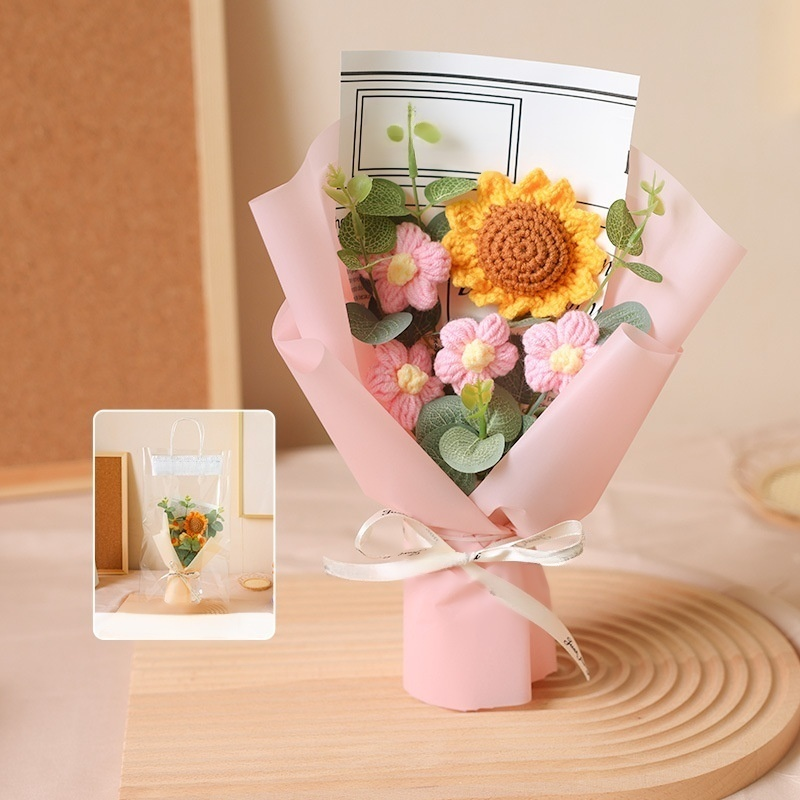 Knitted Artificial Rose and Sunflower Bridal Bouquet
